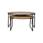 Aanbieding!2-Delige Salontafel Ronin – ø70 cm – mangohout/ijzer – naturel