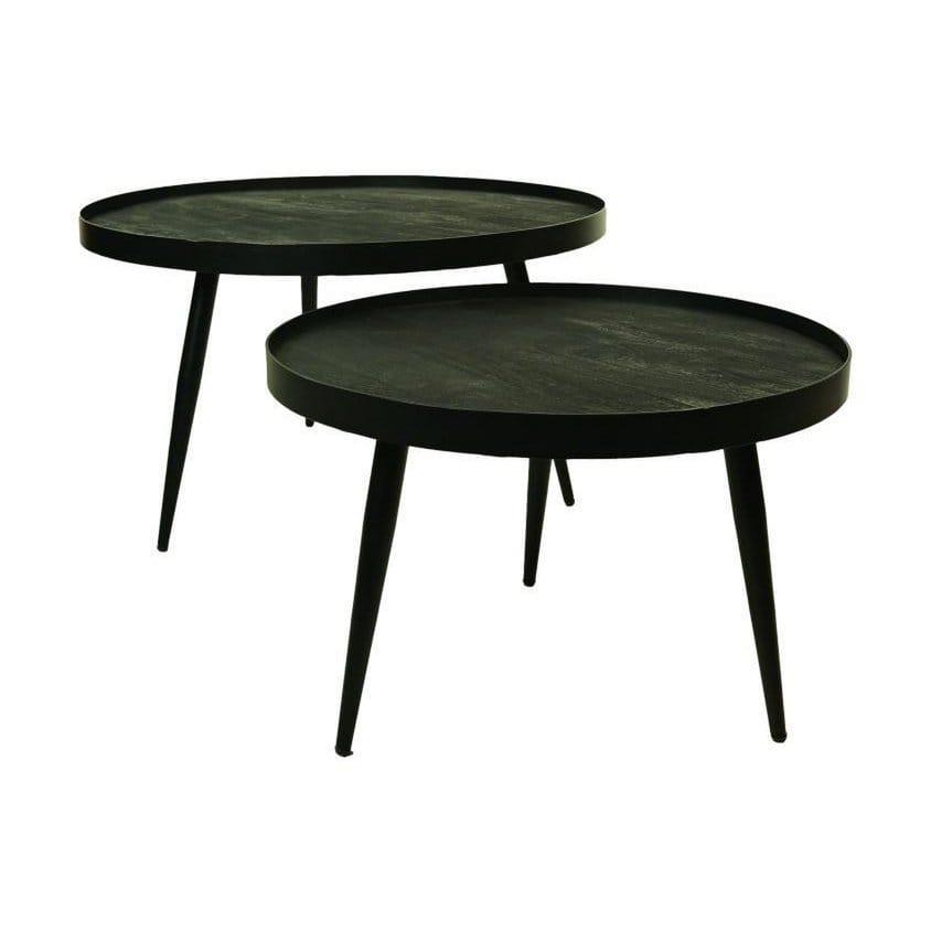 HSM Collectie-Ronde Salontafel S/2-ø76×44/ø58×40-Zwart-Mango/Metaal
