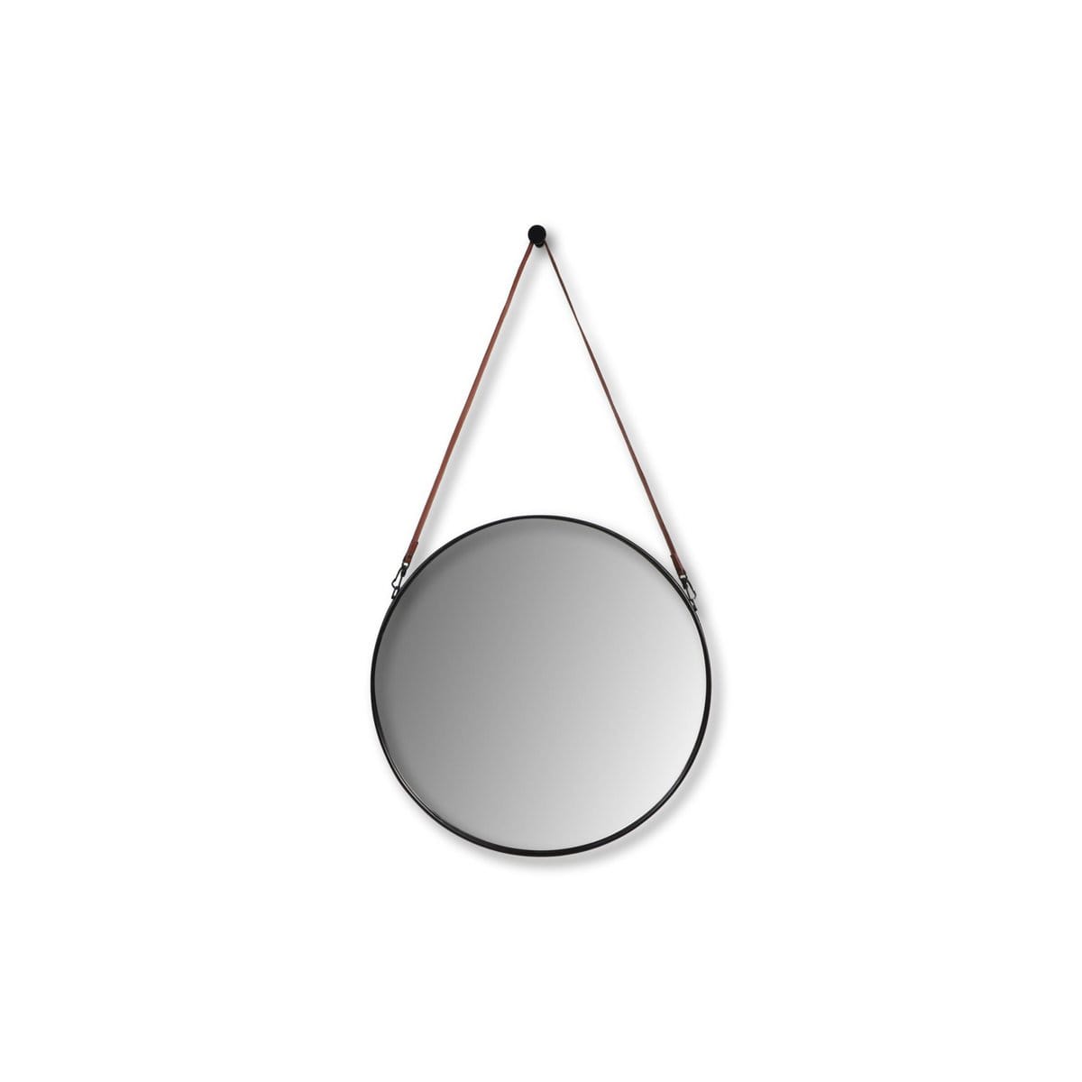 HSM Collectie-Ronde Spiegel Met Riem-63x3x95-Zwart/Bruin-Metaal/Kunstleer
