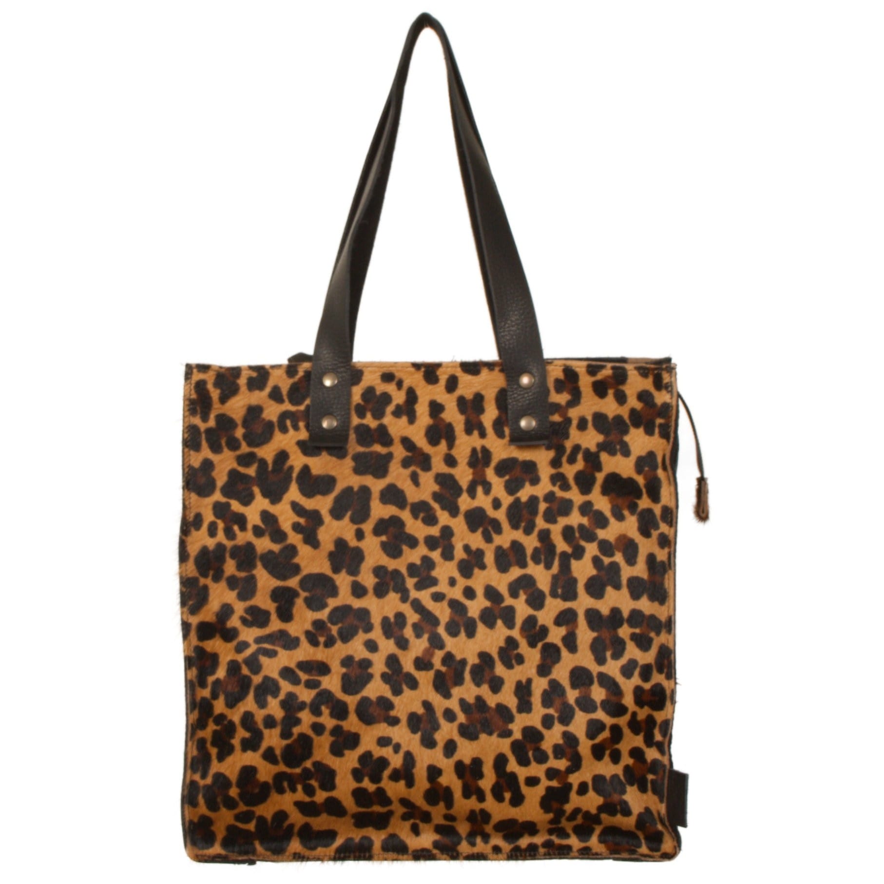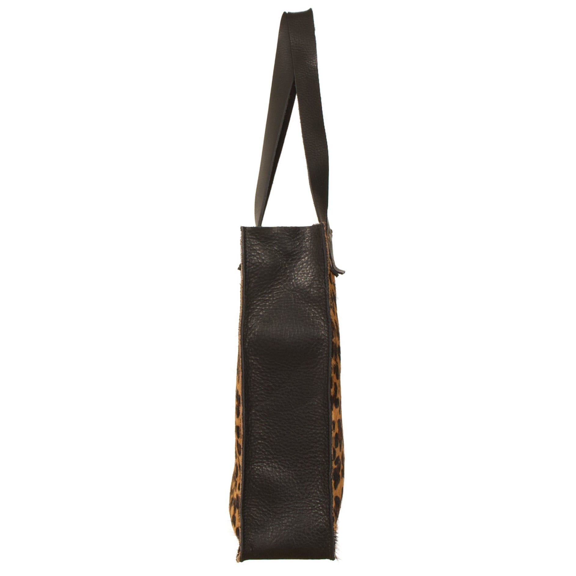 Van Buren Shopper, gemaakt in ons eigen altelier van Panter print koeienhuid en Zwart leder. De Shopper heeft een afmeting van 35x35x10cm, een ritssluiting en binnentasje met rits.