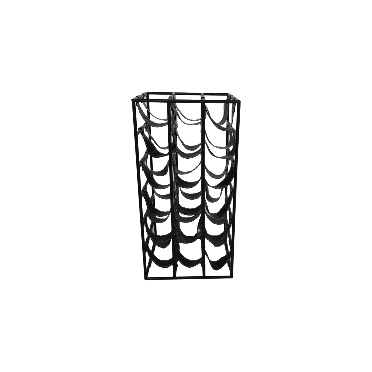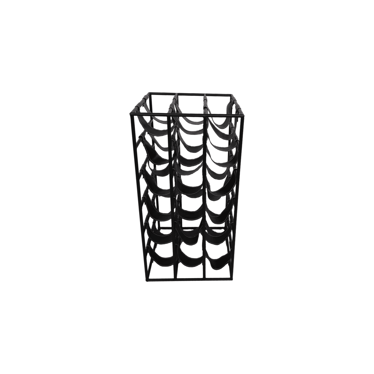 Wijnrek 18 flessen – 33x33x64 – zwart – metaal / leder